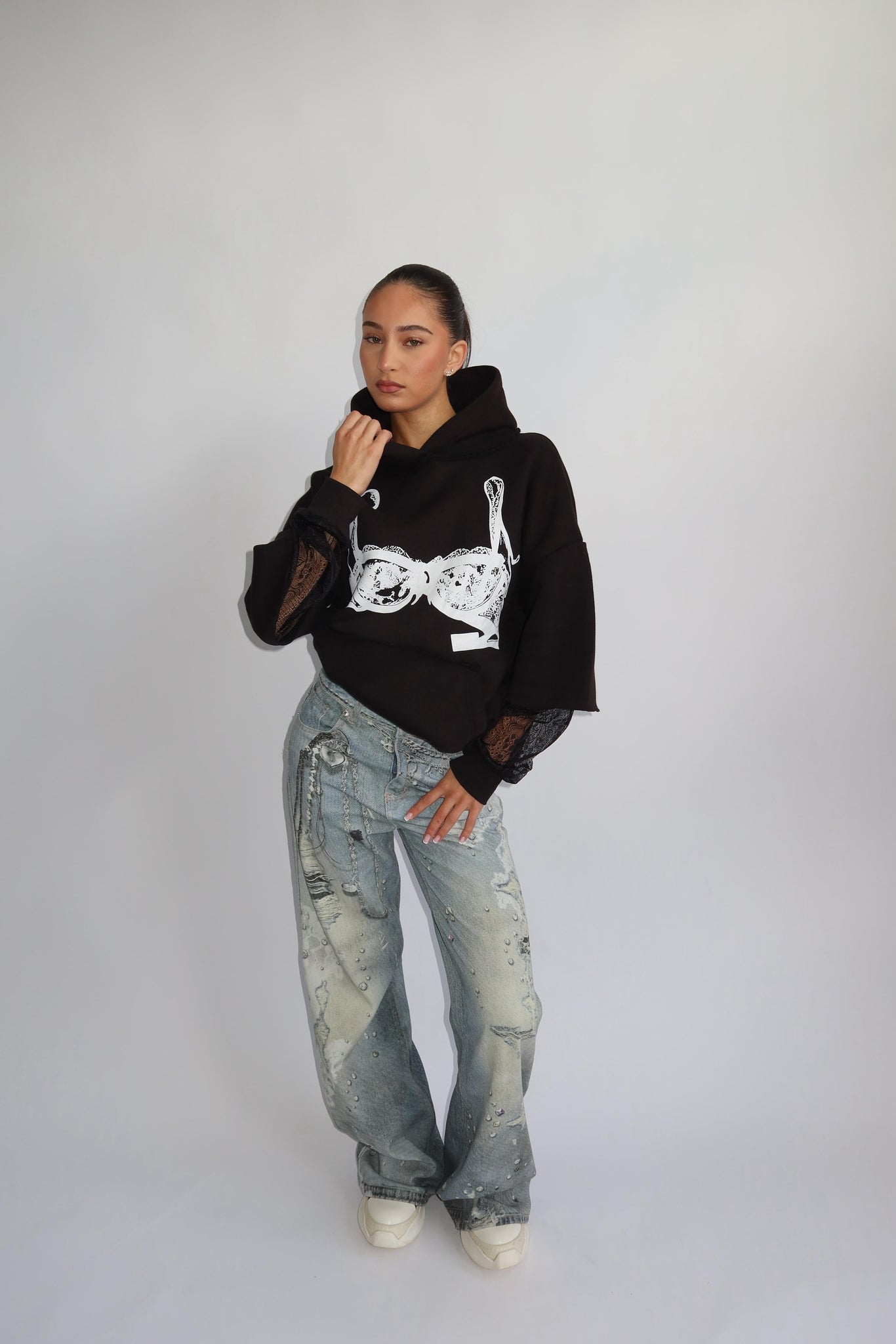 PRIORITY SPICE LACE HOODIE – BLACK